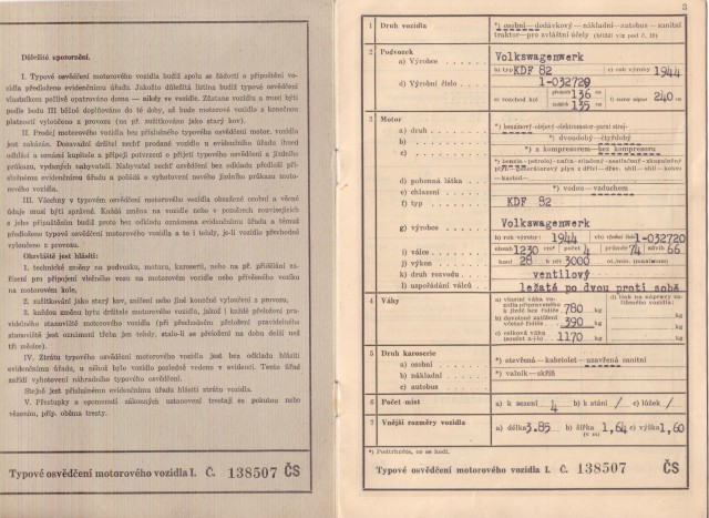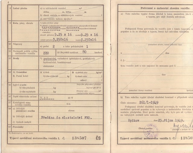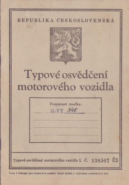 rok výroby 1944, FNO 1949 Vyškov, v. č. 1-032720, koupen 1971 Praha, prodán s SPZ VS-??-??, nabídněte
