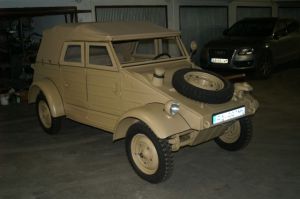 vyrobené 28.9.1943, expedované z fabriky VW: 30.9.19943, pridelené do vojenského okruhu KASSEL, auto má EČ, platný technický preukaz, momentálne v rekonštrukcií, farba Dunkelgelb